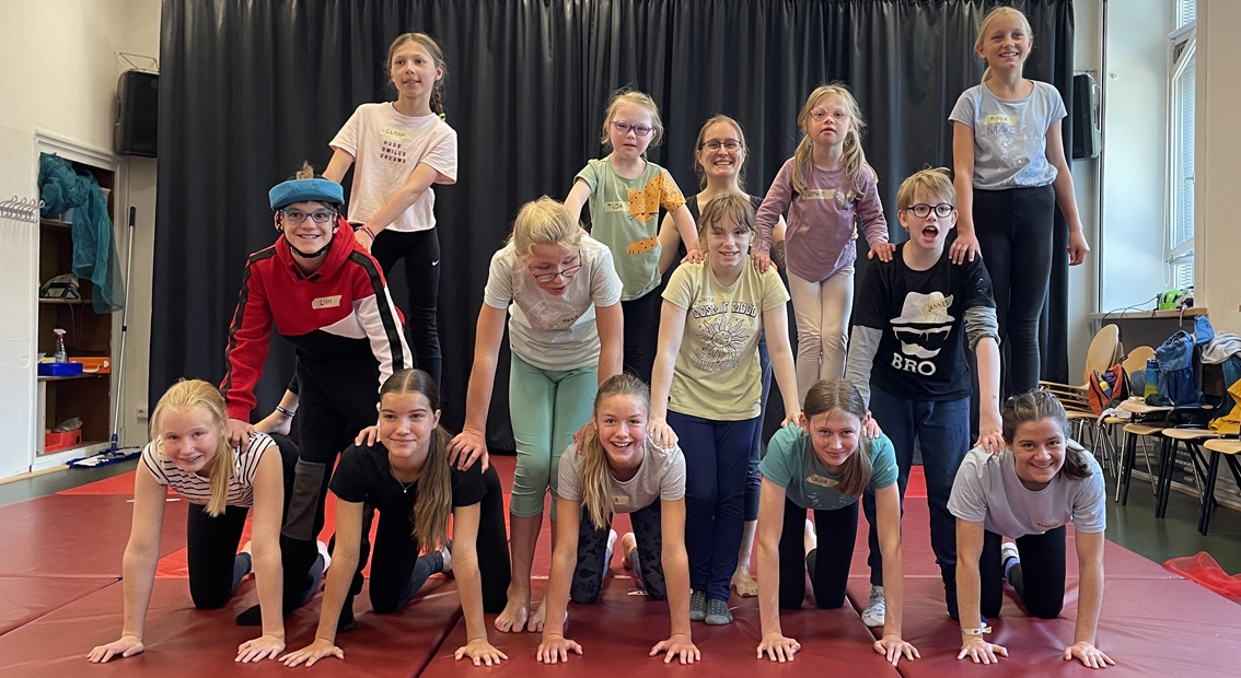 Das Ziel: Freude an der Bewegung und Spaß am gemeinsamen Turnen von Kindern mit und ohne Behinderungen und in verschiedenen Altersstufen (6 bis 14 Jahre). Am eigenen Körper konnten die Kinder erleben, dass Akrobatik vielfältig ist und das Vertrauen in sich selbst und die eigene Kraft und Fähigkeiten fördert. Zum Abschluss präsentierten sie den Eltern einen kleinen Ausschnitt des Gelernten.